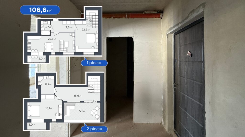 Дворівневий формат – це відчуття приватного дому у квартирі. Чіткий поділ простору для життя і відпочинку, багато світла та жодних сусідів зверху. А тераса стає продовженням оселі – для ранкової кави, вечірніх розмов або спокійного відпочинку на свіжому повітрі після насиченого дня.