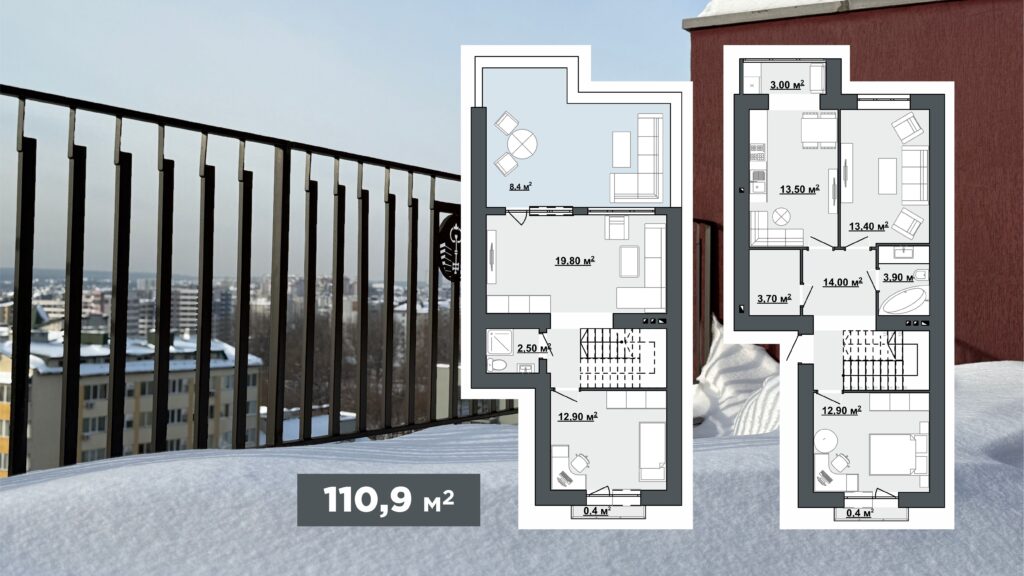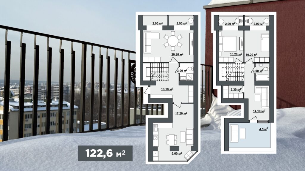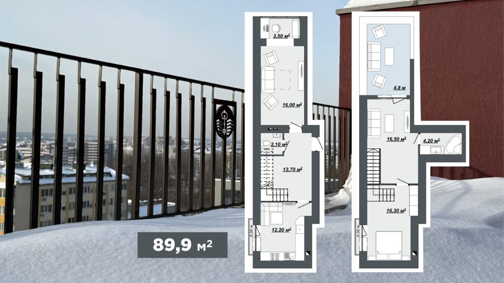 У ЖР “Княгинин” залишилися лише кілька дворівневих квартир – встигніть обрати свою. Це формат житла, який важко порівняти зі звичайною квартирою: два повноцінні поверхи, максимум простору для життя і власна видова тераса.